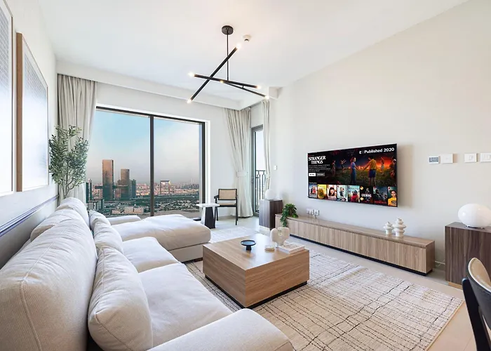 Situé à seulement 6 minutes à pied de Double Decker, Downtown Chic 2 Bedroom Apartment I Dubai Mall Access I Views Of Burj Khalifa From Pool I Free Parking, Gym, Pool & Wi-Fi I By Meerak de 101 m² donne sur la ville. Les attractions de la région incluent les Tours Emirates, à 3 km, et le Parc à thème Dubai Garden Glow se trouve à 3,1 km de la résidence.